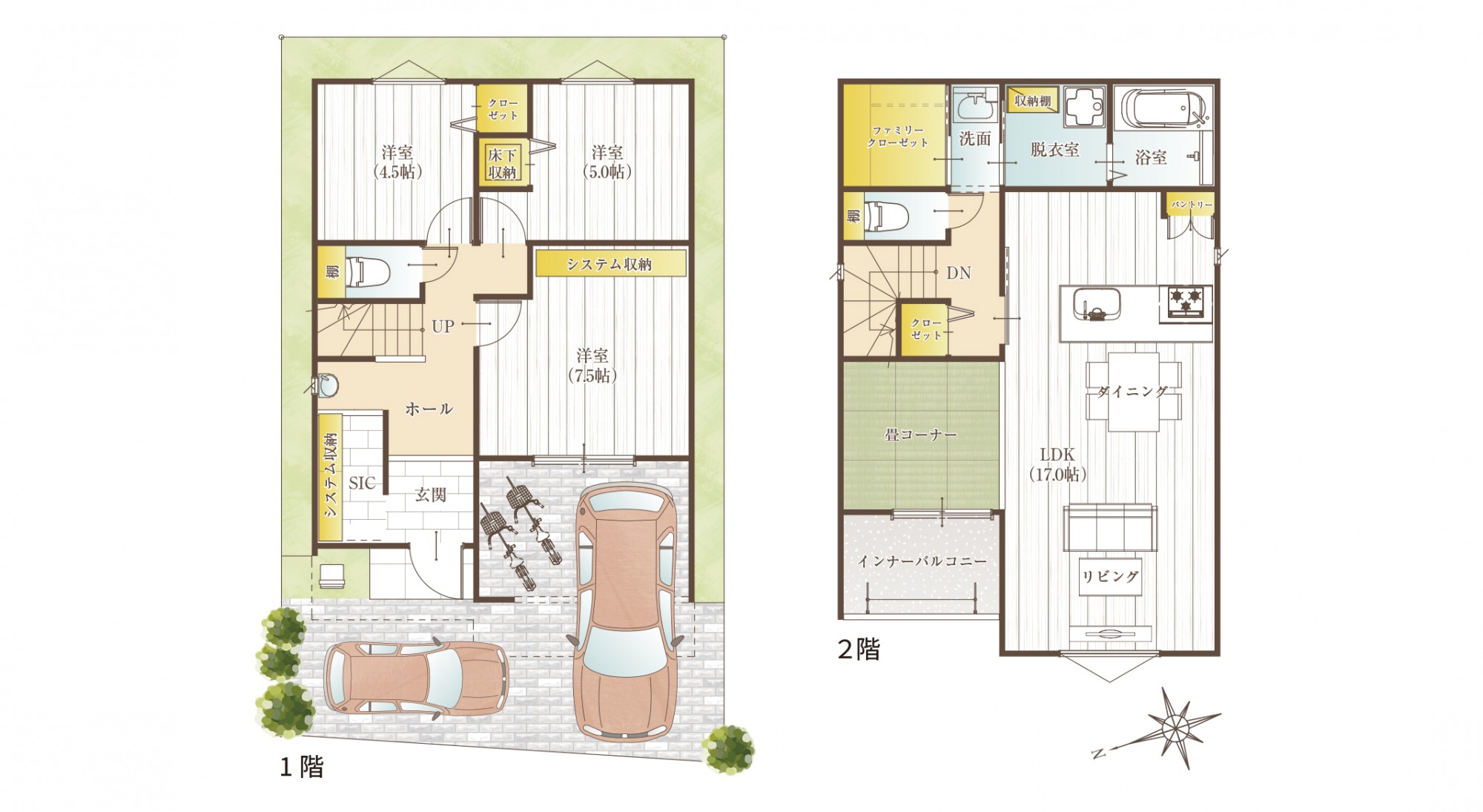 Wセキュリティーで快適・安全なすまい「みまもりハウス」をコンセプトに暮らしやすい設備が充実。