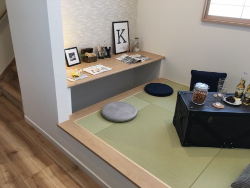 先日ご紹介した「いばらきテラス」のモデルハウスでは、小上がりの和室の一角に家族みんなが使える書斎スペースを設けています。