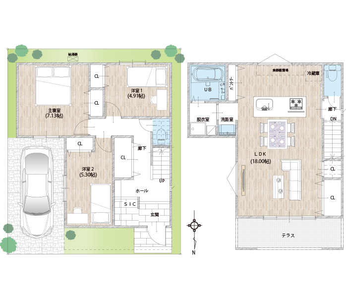 ご紹介するのは、5つの間取りプランのうち、敷地面積80㎡のDプランです。