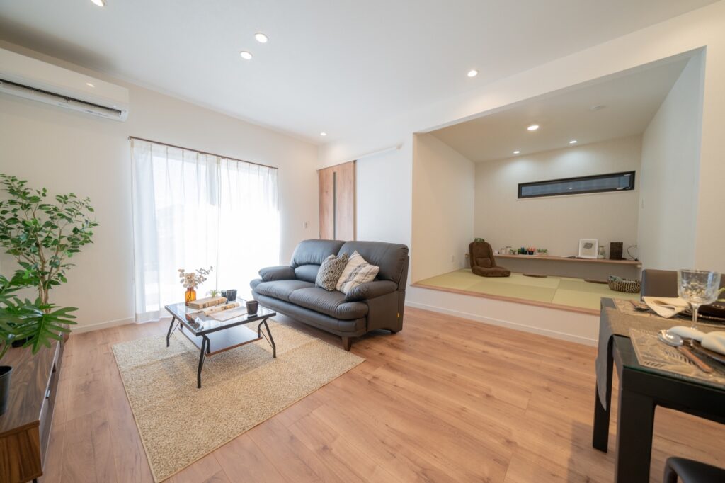 最近は、特に子育てファミリーの間で、リビングの一角に畳コーナーを設ける間取りが人気を集めています。
